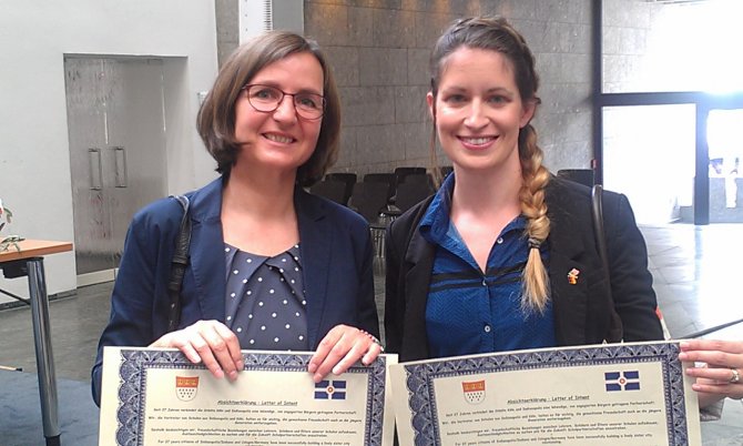 Die Porzer Gesamtschule Lise-Meitner (LMG) hat im Kölner Rathaus offiziell eine Absichtserklärung unterzeichnet für einen Schüleraustausch mit der Lawrence North High School in Indianapolis. Sie wurde unterzeichnet von der Leiterin der Fachgruppe Englisch, Petra Schu, für die LMG und der aus Indianapolis angereisten dortigen Deutsch-Lehrerin Anna Baxter.