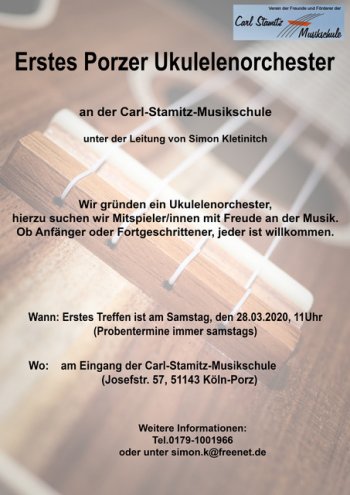 Ersten Porzer Ukulelenorchsters entstanden, das sich am 28.03.2020 zum ersten Mal treffen wird. Kommen Sie vorbei und machen Sie mit!