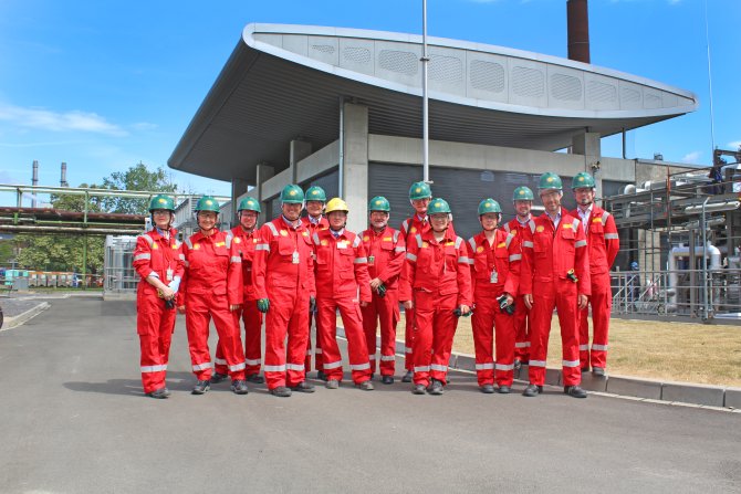 Foto (shell): Benelux-Delegation mit Shell Projektleiter Wolfgang Krüper vor REFHYNE I