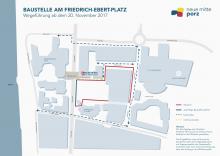 Ab Monatg geht es sichtbar vorwärts mit den Arbeiten am Friedrich-Ebert-Platz: Der Bauzaun wird gestellt.